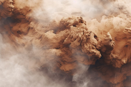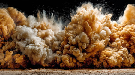 A stunning visual of a powerful explosion cloud showcasing a dramatic burst of brown dust and smoke, creating an impactful scene.