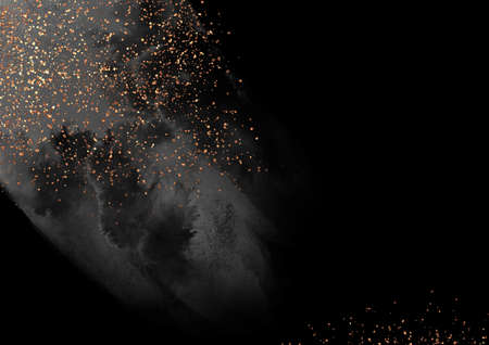 Gold powder explosion on black background. Golden dust cloud. Golden dust explode.
