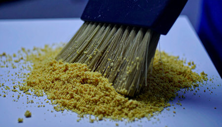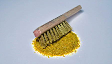 A brush pouring golden sand on the surface. Space for text