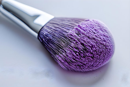 Make up brush with purple dust on a black background