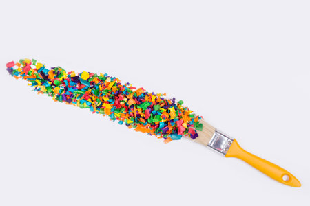Creative layout made of colorful sawdust with paint brush