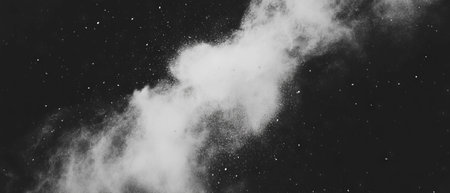 A dramatic capture of white powder exploding mid-air against a dark background, creating a bold visual impact.