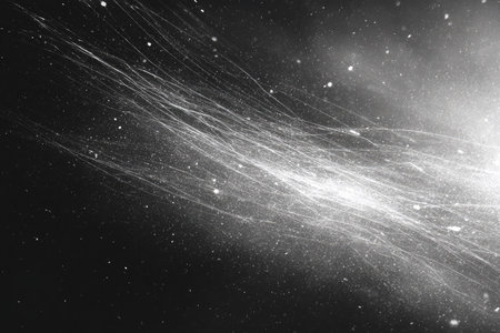 This image presents white streaks flowing across a dark background, creating a dynamic visual effect. The composition employs a textured style with subtle lighting variations. Suitable for digital art, graphic design, and various visual communication needs. The image provides copy space for commercial and editorial purposes.