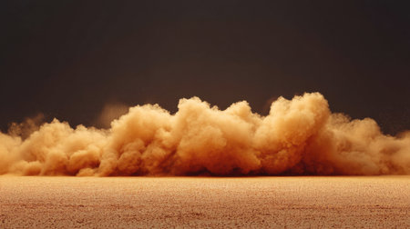 A swirling cloud of dust rises from a surface, creating a dramatic, earthy atmosphere.