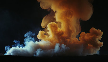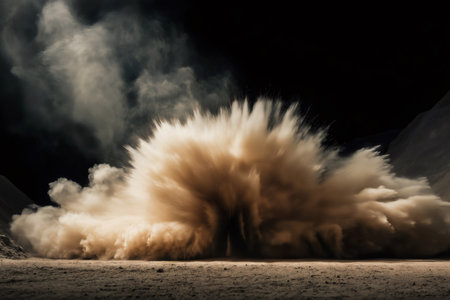 A stunning visual of a powerful explosion cloud showcasing a dramatic burst of brown dust and smoke, creating an impactful scene.