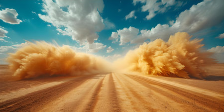 Dramatic dust storm explosion in desert landscape