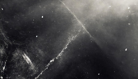 Dust abstract background. Scratched surface. White ash on black weathered grain texture.