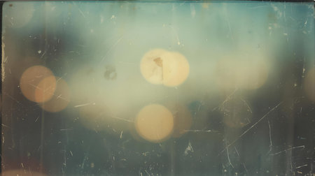 slightly faded holographic gradient with streaks of dust, fine scratches, and worn frame edges. Generative AI