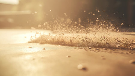 Dust particles sprayed by the wind. Sand on the ground or dust on the floor. Generative AI