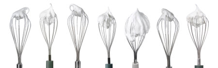 Metal rods to beat, stir or mix food when preparing a recipe manually by a chef. Cooking utensil.