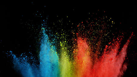 Explosion of colored powder, isolated on black background. Abstract colored background