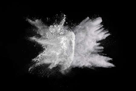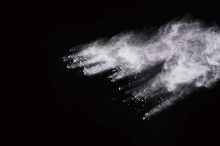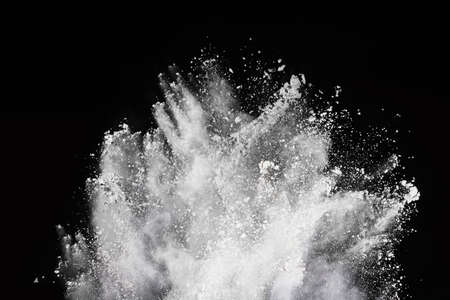 White powder explosion on black background. Colored cloud. Colorful dust explode. Paint Holi.
