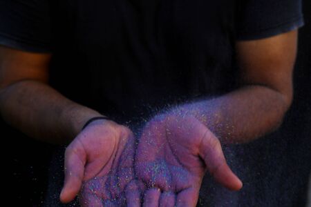 cropped view of hands with holi powder for Hindu spring festival of colour