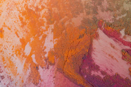 Celebrate festival Holi. Colored powder explosion. Abstract closeup dust