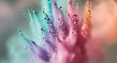 A dynamic burst of colorful powder creates a visually stunning and energetic abstract composition.