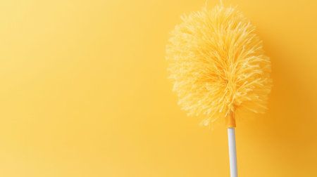 A vibrant yellow duster tool rests against a bright yellow background, emphasizing simplicity and cleanliness, ideal for cleaning purposes in any setting.