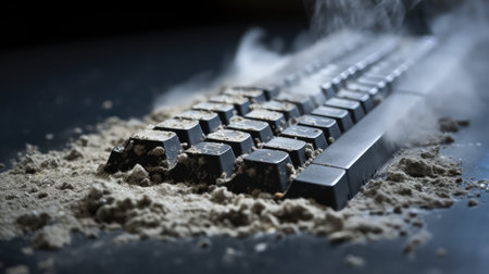 A captivating image of an explosion of dust and smoke heightened by dynamic motion, showcasing elements of chaos and power against a dark backdrop.