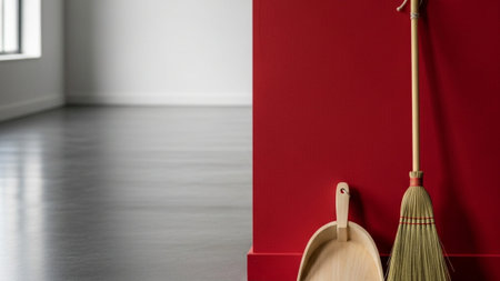 broom and dustpan in diagonal light