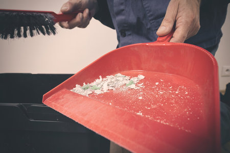floor dust with dust pan close up ,