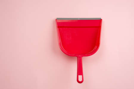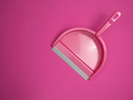 Dustpan on a pink background. The view from the top.