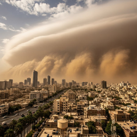 dramatic sandstorm over the modern city
