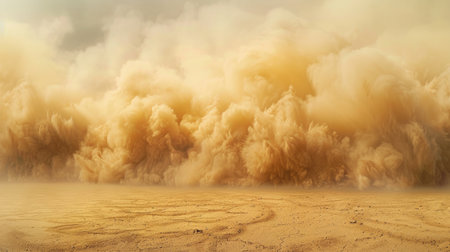 Intense dust cloud rising from the ground, resembling a sandstorm in the desert, dynamic movement of particles creating a realistic effect