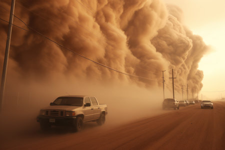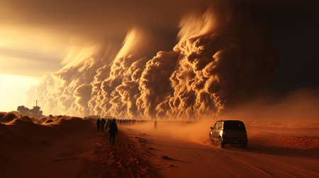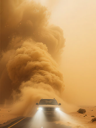 sandstorm engulfing a desert road, created with generative ai