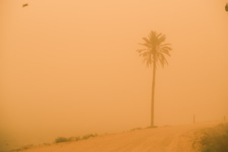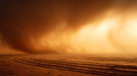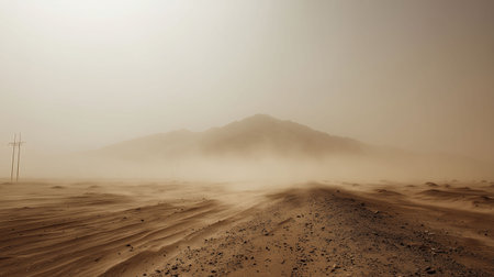 Sandstorm Engulfing a Solitary Desert Road Harsh Environmental Conditions in the Desolate Arid Landscape Dramatic Moody Atmosphere