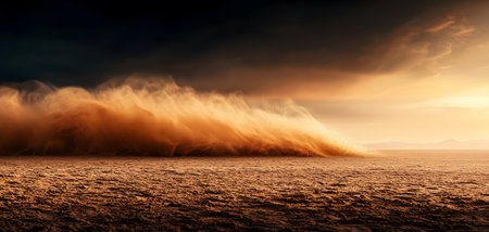 Dramatic dust storm sweeping across desert landscape