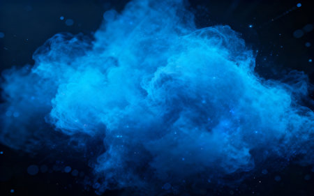 Mystical Blue Abstract Background with Floating Smoke and Sparkle Effects