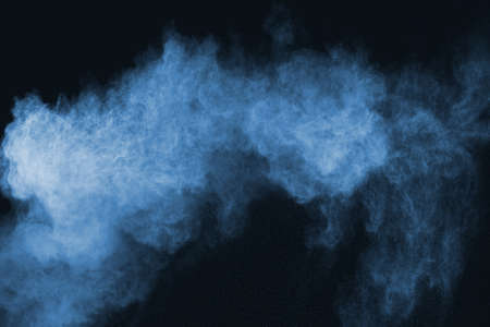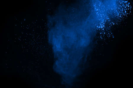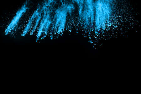 Blue powder explosion on black background. Colored cloud. Colorful dust explode. Paint Holi.