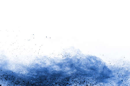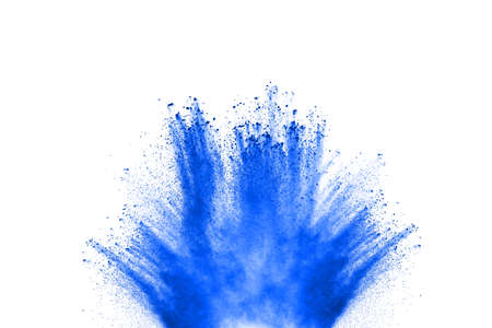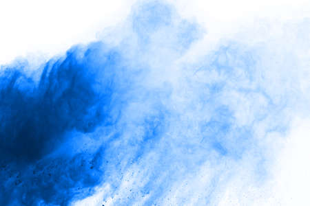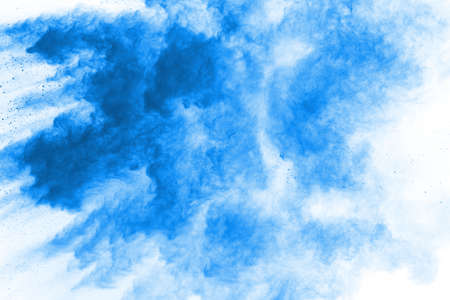 Blue color powder explosion on white background. Colored cloud. Colorful dust explode. Paint Holi.