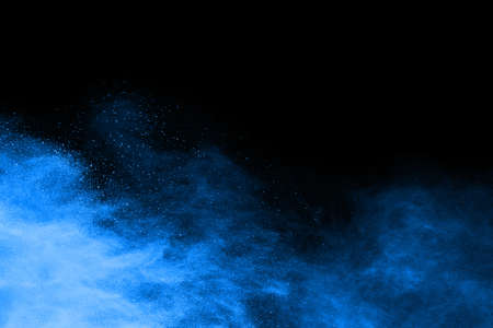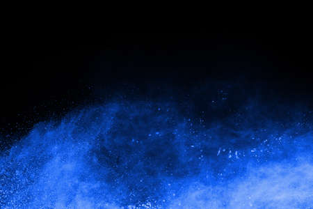 abstract blue powder splatted background,Freeze motion of color powder exploding/throwing color powder,color glitter texture on black background.