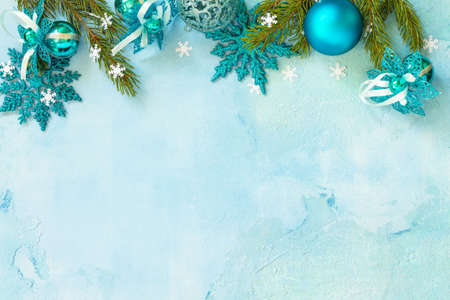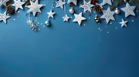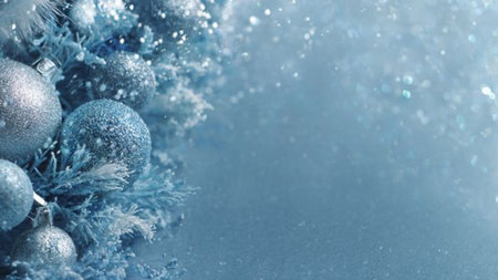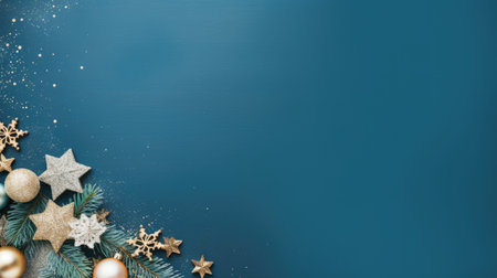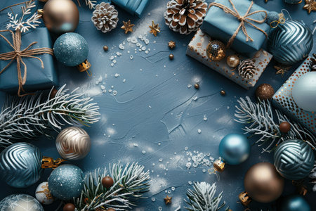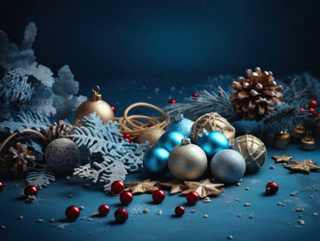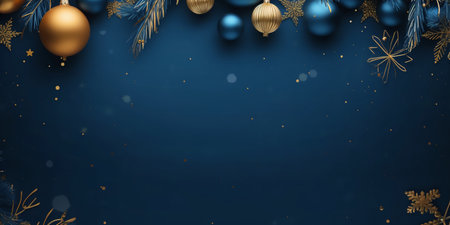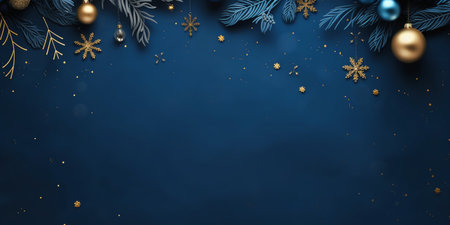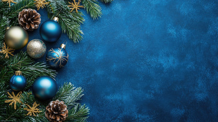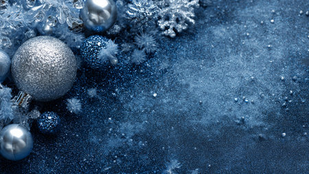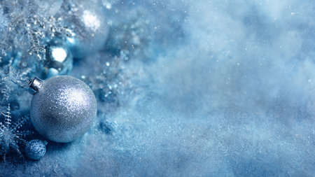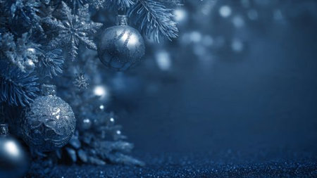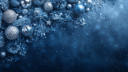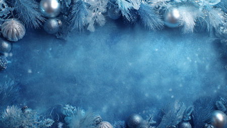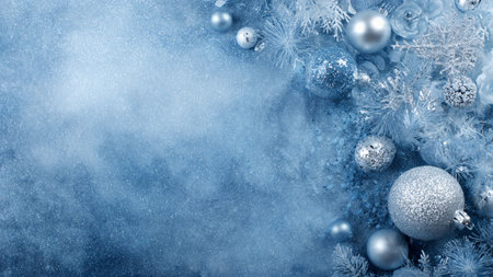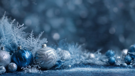 Blue Christmas decoration background with space for text, perfect for festive advertising and seasonal promotions.