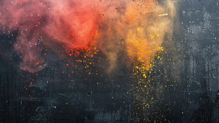 This dynamic and abstract background features an array of spray paint splashes, creating captivating gradients of blue, black, red, and yellow. It evokes a raw, modern aesthetic.