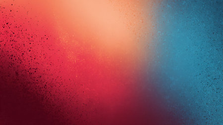 Stylish background blending turquoise, orange, and pink gradients into a glowing texture with realistic film grain and noise for poster use