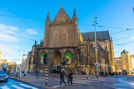 Amsterdam - 02 October 2022 - People on the Dam central square in the old town of Amsterdam city near the Nieuwe Kerk church.