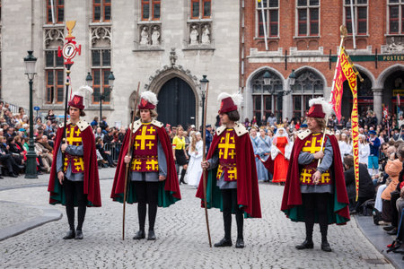 BRUGES, BELGIUM - MAY 17, 2011: Annual Procession of the Holy Blood on Ascension Day. Locals perform an historical reenactment and dramatizations of Biblical events. May 17, 2012 in Bruges (Brugge), Belgium