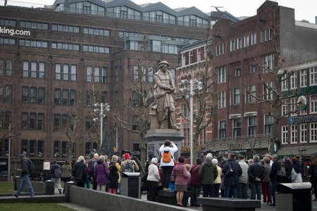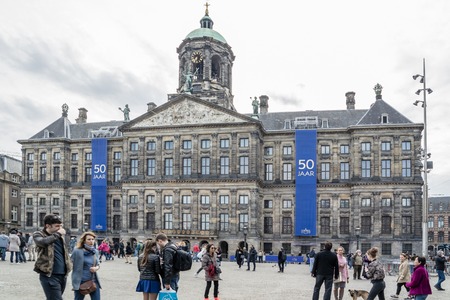 Amsterdam / Netherlands - April 31, 2017 : People enjoying the dam square in the city