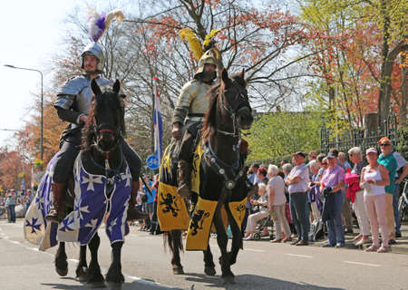 Sassenheim, Netherlands - April 21, 2018: 100 years Bloemencorso Bollenstreek Flower Parade traditional folk holiday