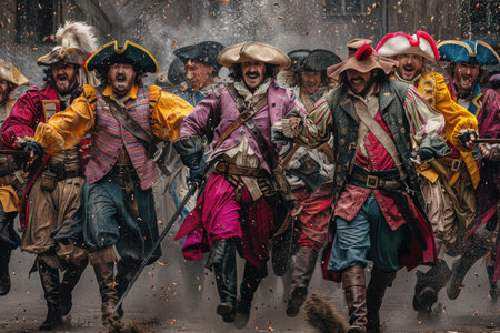 Elegant musketeer in historical attire, portraying bravery and chivalry in an enchanting renaissance setting, a symbol of classic heroism and adventure.