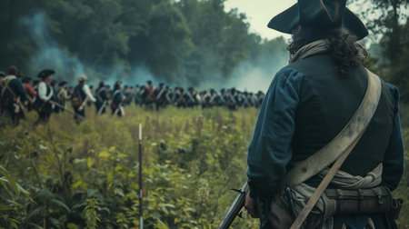 Revolutionary Soldiers Preparing for Battle in a Forest Clearing at Dusk