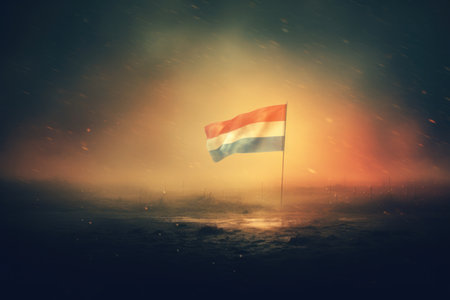 Netherlands Flag, Fog, Night Light.