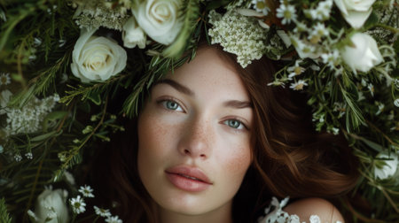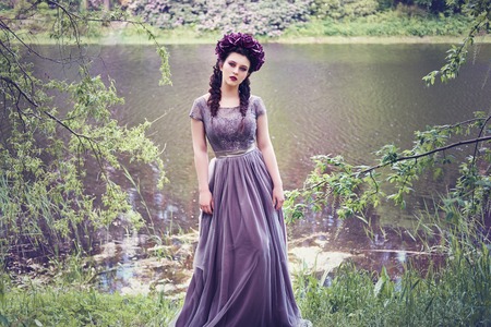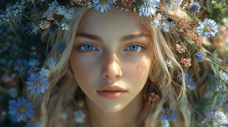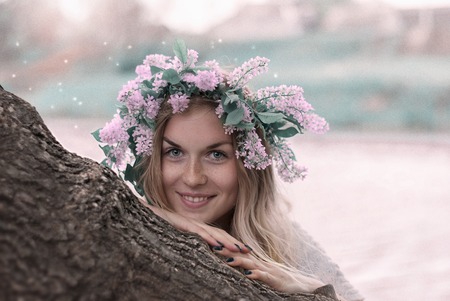 Beautiful woman with flowers in her hair and a wreath on her head