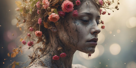 AI Generated. A Decaying Figure with Blooming Floral Growth