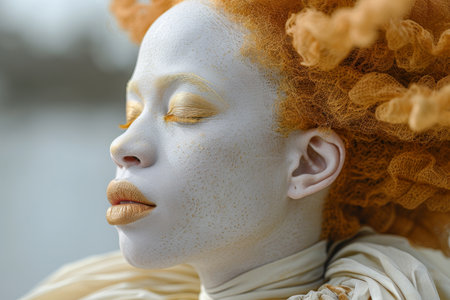 International Day against Albinism. Stylish Portrait of an albino girl.