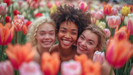 Portrait of beautiful young redhead woman with tulip flowers.
