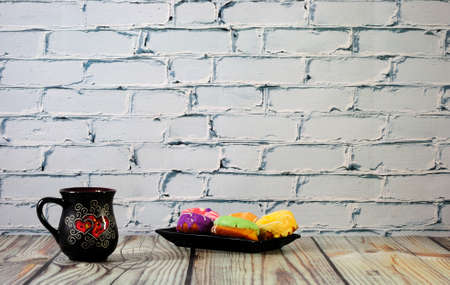 A cup of coffee with flowers and cookies. Vintage