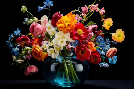 Vibrant Blossoms Captured in a Striking Display: A Stunning Photo of Multicoloured Flowers in a Glas