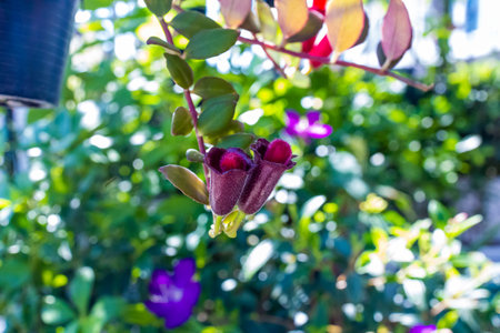 Purple Iochroma cyaneum , flowering ornamental plant blooming in the springtime